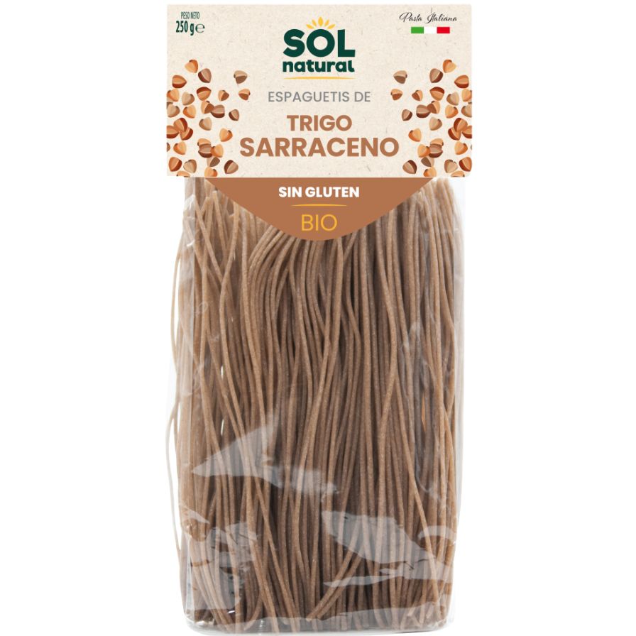 Spaghetti de Trigo Sarraceno Sin Gluten Bio 250g Sol Natural. Producida en Italia y llevada a cabo 100% a base de harina de trigo sarraceno de agricultura ecológica. Basta con hervirla en abundante agua salada entre 8 y 10 minutos para una cocción "al dente".