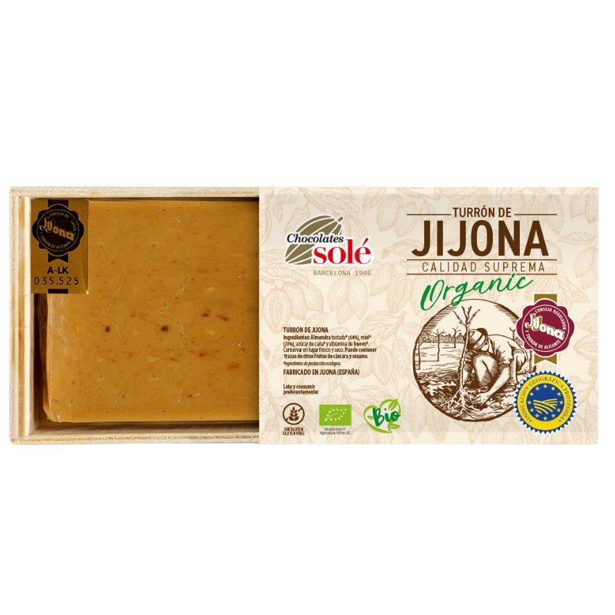 Turrón de Almendra Blando Bio Fairtrade 200g Chocolates Solé. Con ingredientes 100% de agricultura ecológica y de Comercio Justo. Delicioso al paladar y apto para celíacos. ¡Ideal para estas fiestas de Navidad! Sin lactosa y apto para dietas veganas.